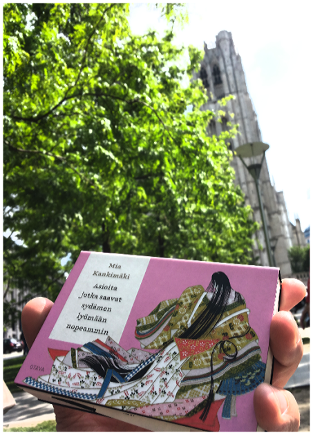 Toisena matkalukemisenani oli ei-belgialainen teos, ensimmäinen MIKI-kirjani. Virsikirjaa muistuttava hentopaperinen, kämmeneen sopiva painotuote on kätevä kuljettaa matkalla, ja sisältökin matka- ja päiväkirjamaisena kulttuuriseikkailuna sopi tunnelmaan, vaikka Japani olikin teemana. Mia Kankimäen Asioita jotka saavat sydämen lyömään nopeammin (Otava/Miki 2013) on helppolukuinen, sitä sopi lukaista paloittain nähtävyyksien lomassa.