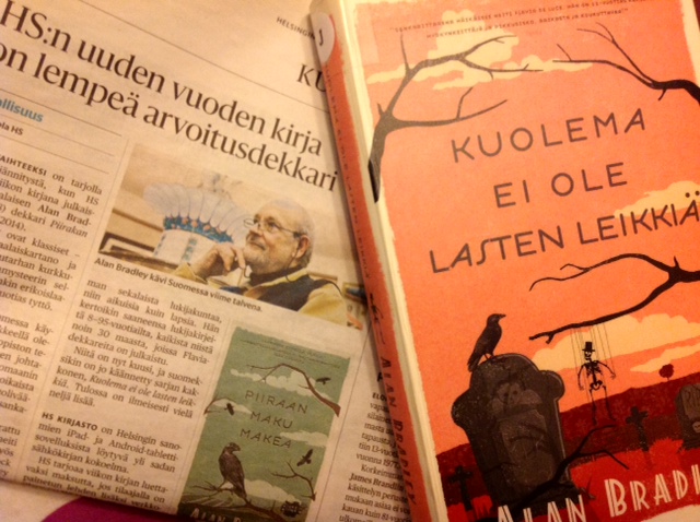 Sinä hoksaava lukija huomaat, etten mainitse mitään itse kirjoista. Olkoon. Piiraan maku makea (Bazar 2014) kertoo kartanon kasvimaasta löydetyn ruumiin tapauksesta ja siihen sekoittuu harvinaisten postimerkkien katoaminen. Sarjan ensimmäinen osa tutustuttaa ällistyttävään päähenkilöön ja toimintaympäristöön. Toinen osa Kuolema ei ole lasten leikkiä (Bazar 2014) keskittyy Flavian etsiväntyöhön, tällä kertaa nukketeatterimiehen ja pienen pojan kuoleman selvityshommissa. Pikantin lisän kirjaan tuo mainio Felicity-täti. Yhtä pakottamaton ei toinen osa ole kuin ensimmäinen, pitää vain hyväksyä epäuskottava lapsisankaritar ja agathachristietyylinen arvoitusdekkarijuonitus.
