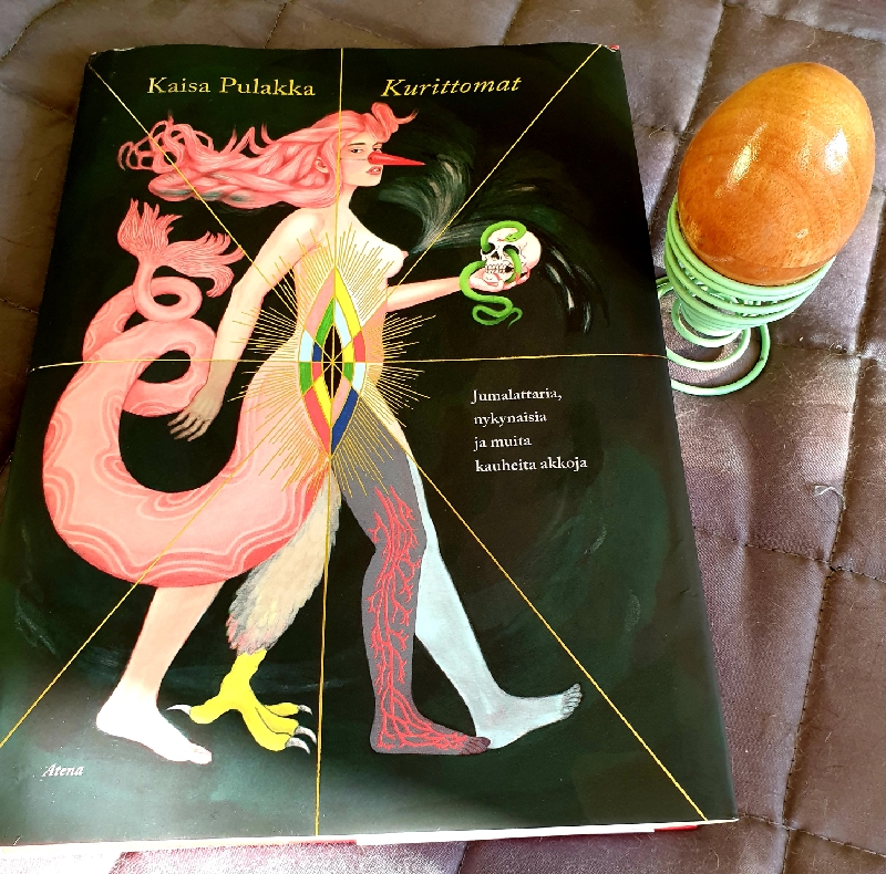Ja virkistävän vinoja vinkkeleitä Kaisa Pulakka tarjoaakin kirjassaan Kurittomat (Atena 2021), jossa hän esittelee myyttien kauheita akkoja. On ilo esitellä kirja näin Kalevalan päivänä, sillä kirjan naisgalleriaan mahtuvat Louhi, Lemminkäisen äiti ja muita kotimaisen kansanrunouden naisväkevyyden värssyjä. Vaan ei siinä kaikki, sillä Pulakka kietoo toisiinsa eri kulttuureiden samansisältöisiä naistarinoita.
