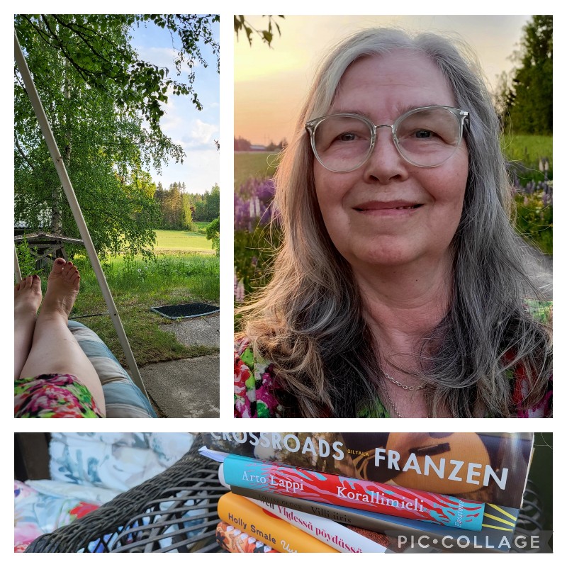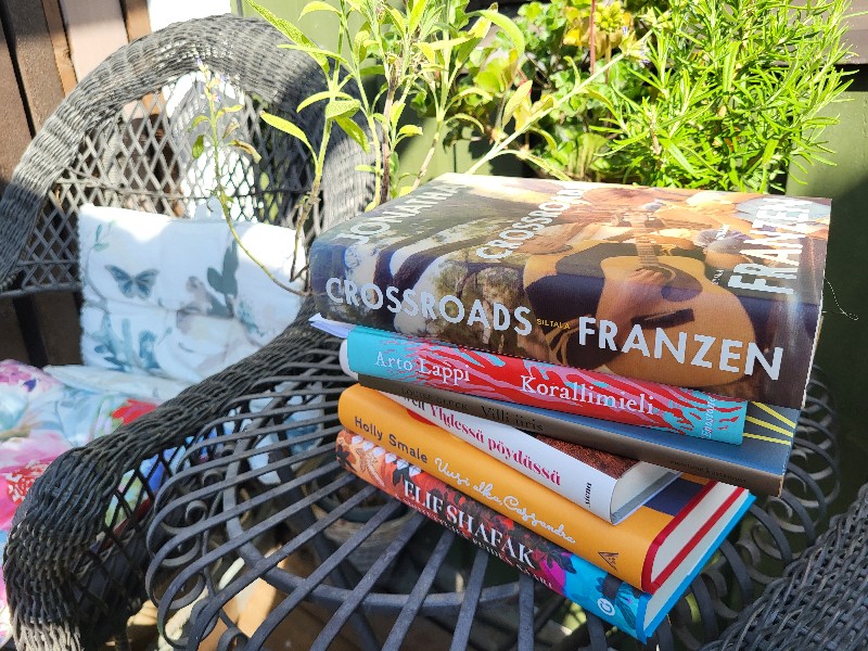 Haen itse kirjoista levon hetkiä. Kesäkirjapinossani on pitkälti proosaa. Kirjapiirini kesäkirja on Jonathan Franzenin Crossroads, uutuuksista odotushorisontissa siintävät Pasi-Ilmari Jääskeläisen ja Elif Shafakin romaanit. Klassikkohaasteeseen on vielä kirjavalinta tekemättä. Kirjapinossani on myös viihdettä ja jännitystä, myös lyriikkaa. Koska tänä kesänä minulla ei ole lainkaan kesäsuunnitelmia, etenen kirjojenkin suhteen samoin: valitsen luettavaa tilanteen ja tunnelman mukaan.