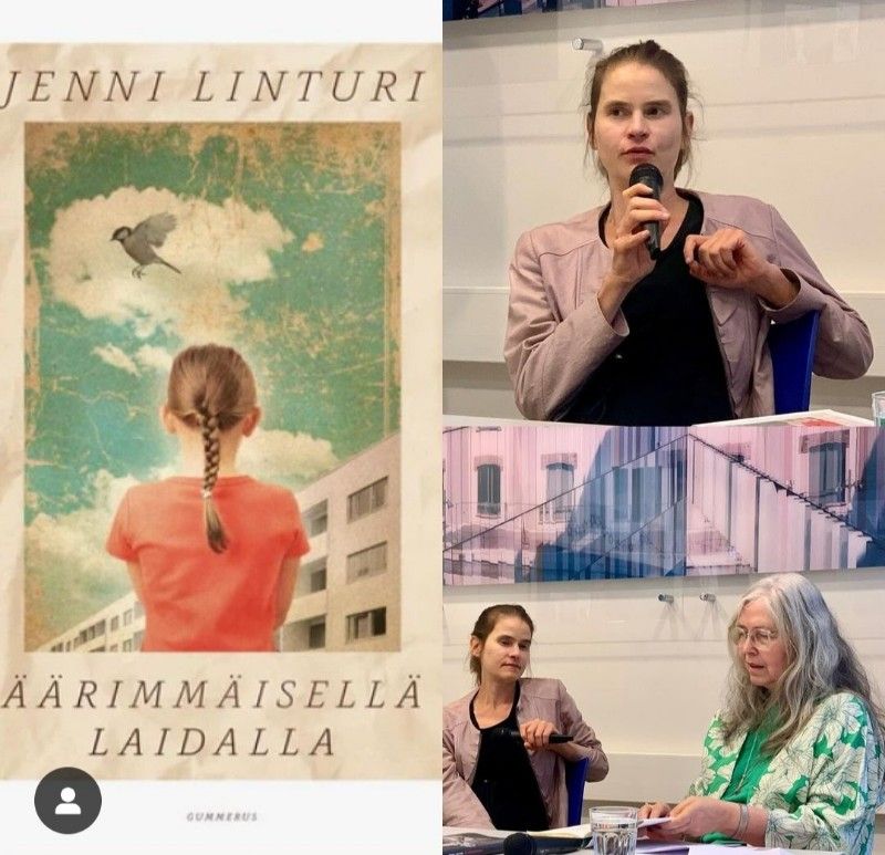 Onneksi saimme Jenni Linturin esille Malmin kirjastoon, sillä kirjailijan ajatukset avarsivat tuotantoa, joka jo itsessään tempaa mukaansa. Nyt jäämme odottelemaan jatkoa Äärimmäisellä laidalla -romaanille, ehkä tulossa on Mirkun vaiheita 1980-luvulla tiedotusopin opiskelijana.