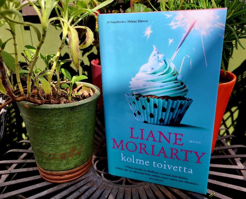 Suosikkejani Moriartyn suomennetusta tuotannosta ovat Hyvä aviomies, Mustat valkeat valheet (myös tv-draamasarjana) ja Omena ei kauas putoa. Uusin suomennos Kolme toivetta (WSOY 2023) on Moriartyn esikoisromaani, joka on alun perin ilmestynyt jo 2004, ja nyt sen on sulavaksi suomentanut Helene Bützow.