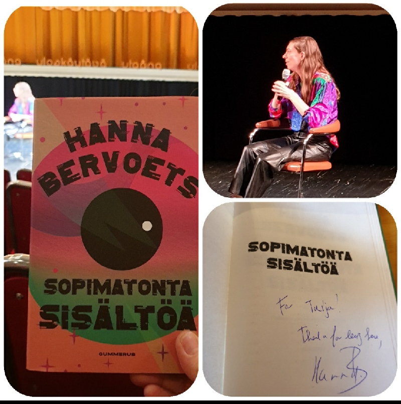 Hanna Bervoetes oli yksi Helsinki Litin viikonvaihteen vieraista. Hän keskusteli eloisasti Ville Blåfieldin kanssa esimerkiksi kirjan tärkeimmistä teemoista, somesta ja vähän Euoroviisuistakin. Keskusteluparin yhteispeli ihastutti.