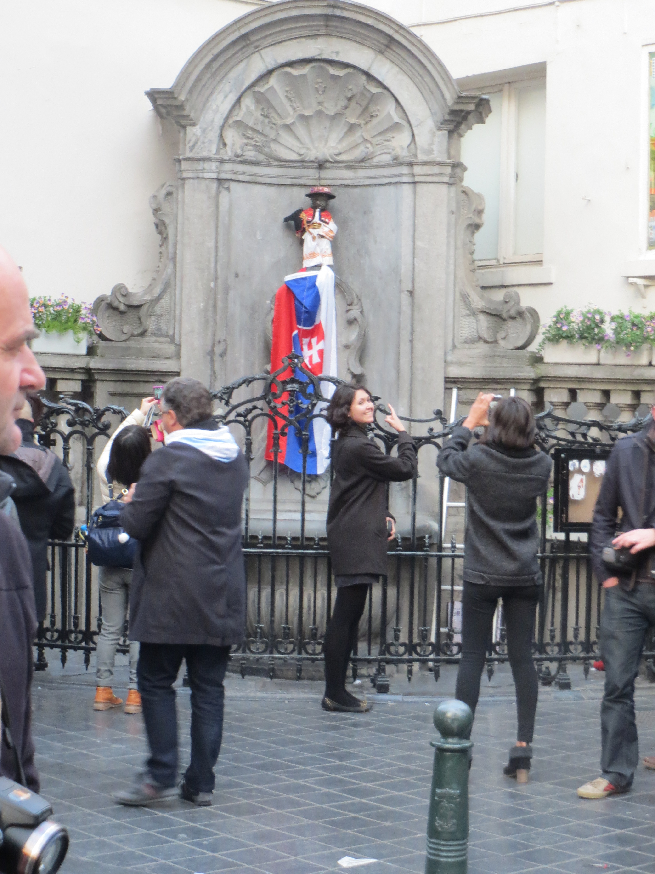 Manneken Pis pukeutui lyhyen matkan aikana useaan vaateparteen – pojulla on valittavana noin 600 asua – ja siskolikka Janneken oli teljetty vanhan keskustan toiselle puolelle kaltereiden taa.
