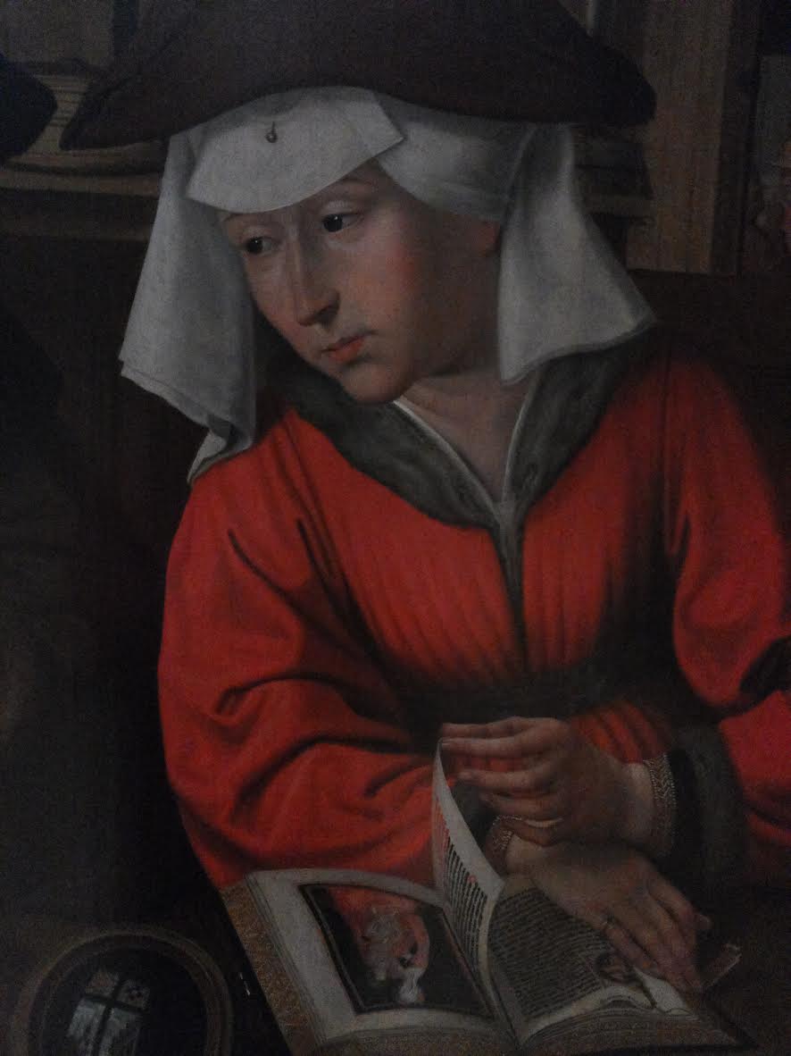 Asioita, jotka saavat sydämeni lyömään nopeammin, löytyi reissultani, etenkin Brughelit, van Eyck ja Bruggen kanavamaisemat. Ja sitten tapasin lukevan naisen aikojen takaa: Quenten Metsysin maalauksessa pankkiiri laskee rahojaan ja hänen tyyni vaimonsa keskittyy lukemiseen. Näin 1500-luvulla. Minulla ei ole taustatukena pankkiiria mutta paneudun silti jatkossakin lukemiseen, aika ajoin, aikoihin ja ajatuksiin ajautuen.