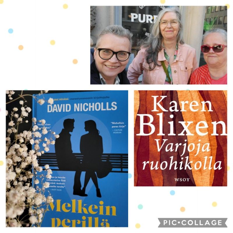 Johanna, Taru ja minä aloitimme keskustelun Karen Blixenin kirjasta Varjoja ruohikolla (BookBeat 2023, ilmestynyt suomeksi 1960). Valitsimme kirjan siksi, että lukupiirissä olisi välillä vanhaa pohjoismaista kirjallisuutta.