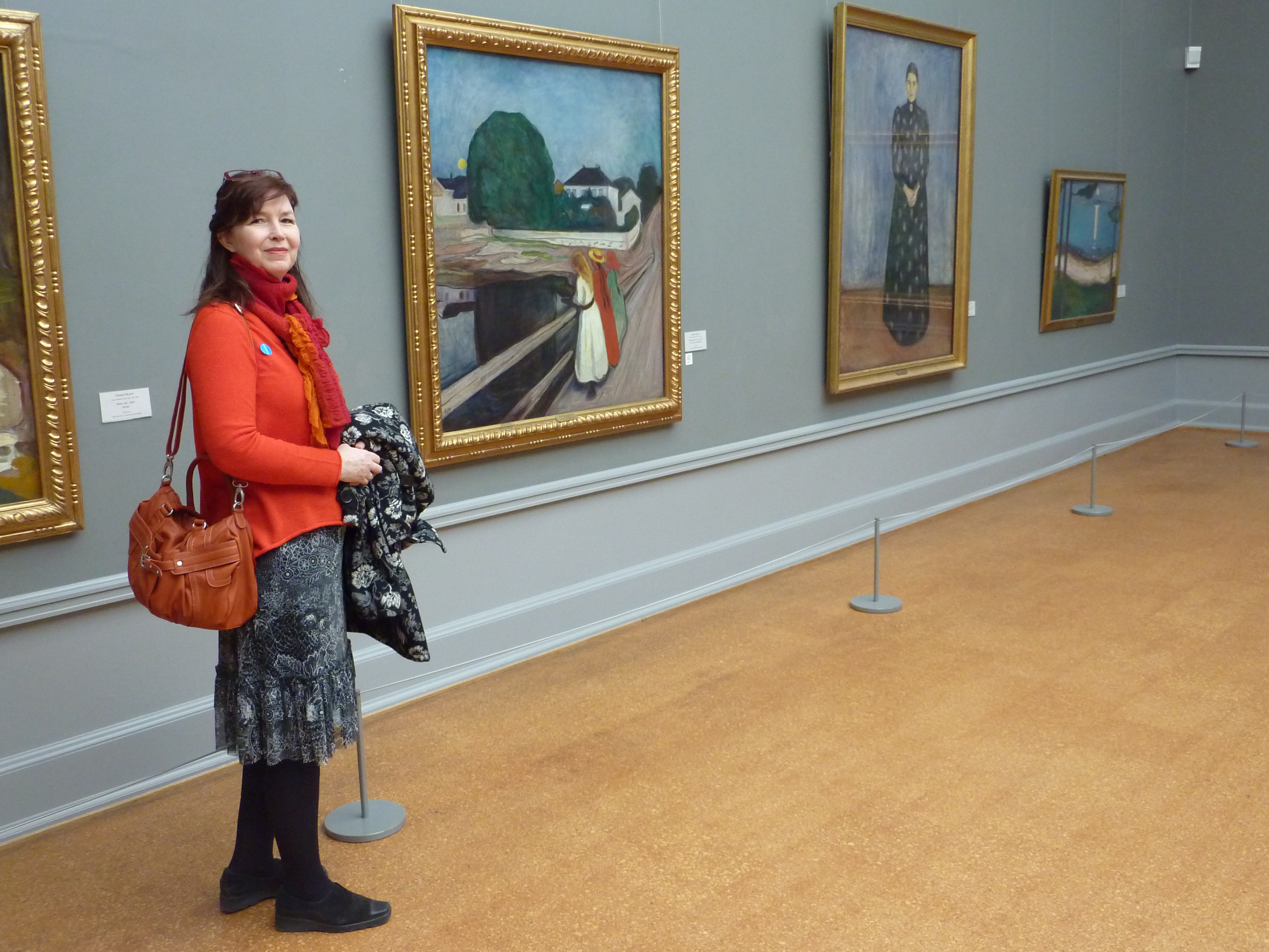 Munchin taide oli yksi matkan pääintresseistäni. Kyllä kelpasi katsoa lähellä värejä, muotoja ja siveltimenvetoja. Munchin maalaukset ovat aina kiehtoneet minua, ja läheltä katsottuna ne alkoivat kertoa omia juttujaan minulle. Tai paremminkin omia juttujani minulle. Sitä se ekspressionismi teettää. Kansallisgalleria oli muutenkin katsomisen väärtti: Cranachista El Grecoon, ja Munchin lisäksi muita perusmodernisteja ja norjalaisia kansallistaiteilijoita. Munch-museo ei ollut niin järisyttävä kuin Kansallisgallerian nimikkohuone, jossa oli Huuto, Madonna, Tytöt sillalla ja muutama muu merkkiteos. Puberteetti oli pysäyttävä teos.