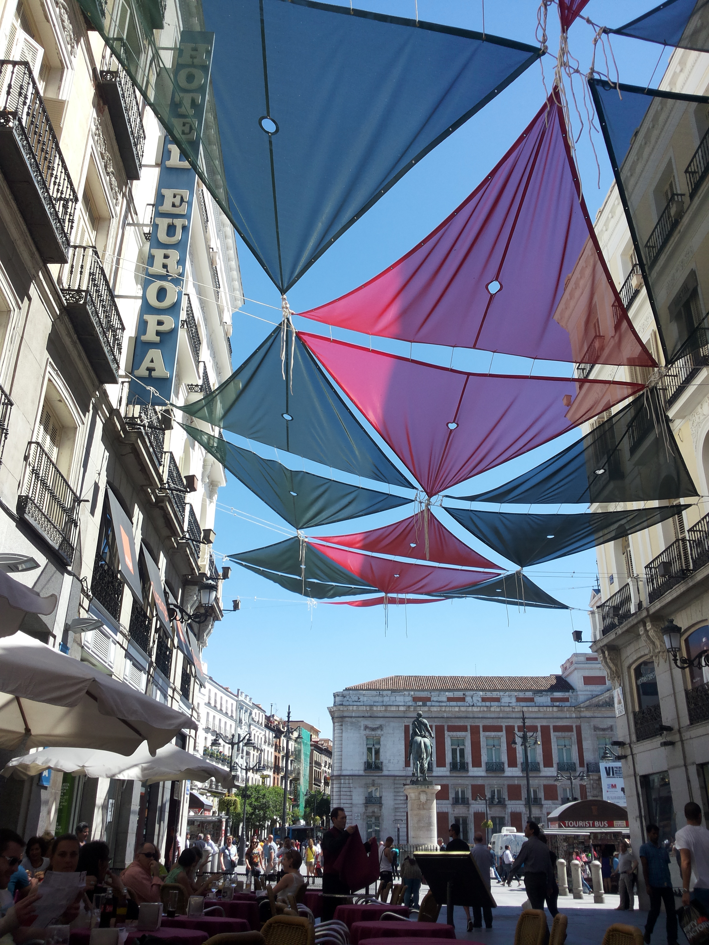 Matkani Madridiin oli taidepainotteinen. Kesäkuinen kaupunki oli värikäs ja helteinen. Ei ihme, että espanjalainen käyttömuoti on kirjavaa ja eri kuosien yhdistelyä, sillä kesäinen kapunkikuvakin syntyy kirkkaista väriyhdistemistä ja eri aikojen arkkitehtuurin sekoituksesta. Puuistutuksissakin vaihdellaan lehtien muotoja ja värejä verenpunaisesta eri vihreän sävyihin. Niitä tehostaa hehkuvan valon ja tummien varjojen kontrasti.
