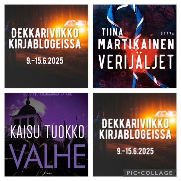 Dekkariviikko on päättymässä. Viikon aikana luin kokosin kotimaista jännitysromaania, joten tarjoan niistä viikon kunniaksi lyhyet makupalat. Kumpikin on sarjansa kolmas kirja. Kolmas kerta toden sanoo?