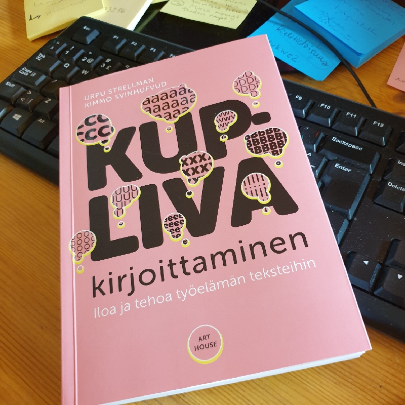 Urpu Strellman ja Kimmo Svinhufvud pirskahtelevat tärkeää asiaa: kirjoitustaito saattaa olla avaintekijä rekrytoinnissa tai työssä pärjäämisessä. Nykyisin monessa ammatissa tuotetaan tekstejä, joten kokeneet kirjoittamisen opettajat ovat koonneet innostavan kirjoitusoppaan Kupliva kirjoittaminen (Art House 2020). Kirjan alaotsikko ei avaamista kaivanne: Iloa ja tehoa työelämän teksteihin.