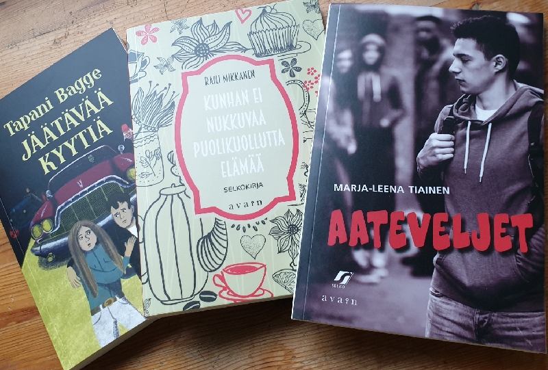 Tänä syksynä on ilmestynyt selkokirjat nuorille kolmelta komean tuotannon jo julkaisseelta kirjailijalta: Tapani Bagge, Raili Mikkanen ja Marja-Leena Tianen. Kaikkien kustantaja on Avain. Nämä kirjat toivottavasti löytävät lukijoita yläkoulusta. Ja koska tuloillaan oleva syysloma on lukuloma, kirjavinkkaus on juuri nyt paikallaan.