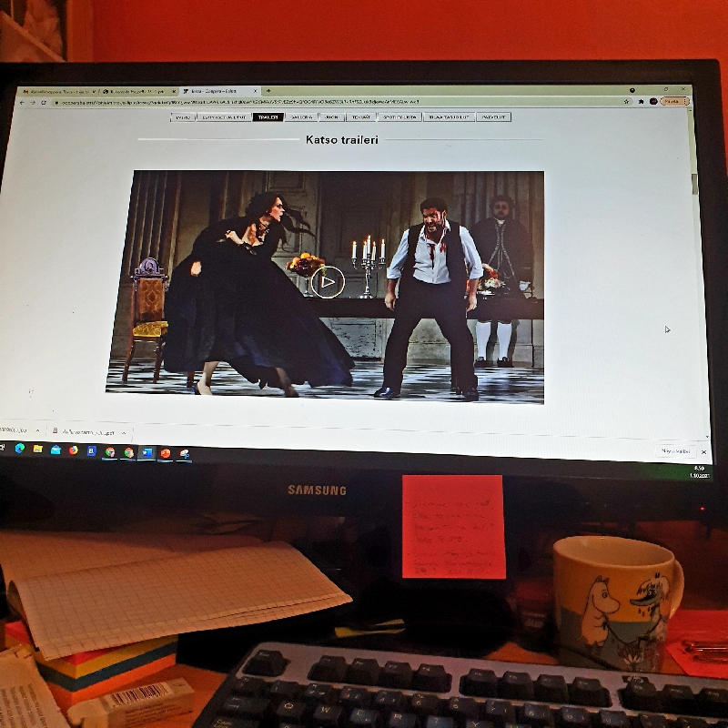 Kansallisoopperan Toscan näin pitkän koronatauon jälkeen, joten kulttuurinälkään ahmin tämän väkevän tulkinnan lähes pureskelematta. Esityksessä on jopa useita kohtia, jotka liikuttavat.